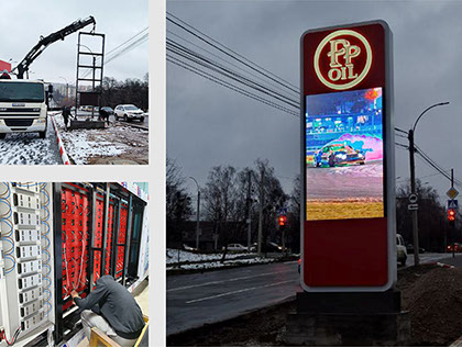 Процес виготовлення та встановлення стели на АЗС ЛЕД табло, монітор